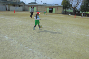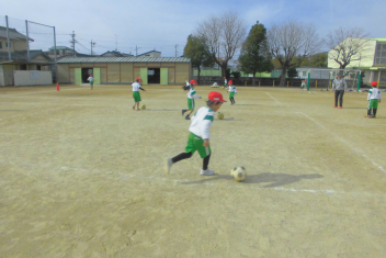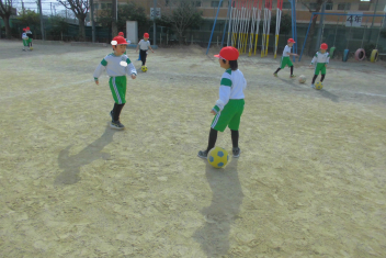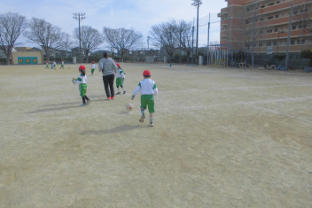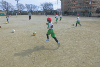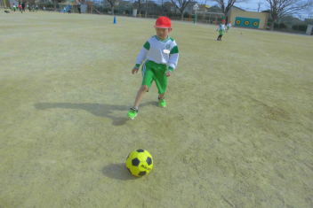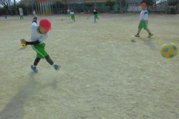 運動場いっぱいに広がって、ボール蹴り遊びを楽しんでいました。