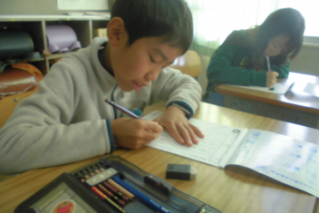 この日は、5年生の子供たちがプリント学習に取り組んでいました。落ち着いた雰囲気の中、集中して取り組んでいました。