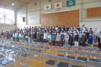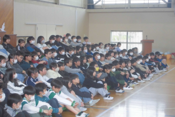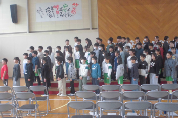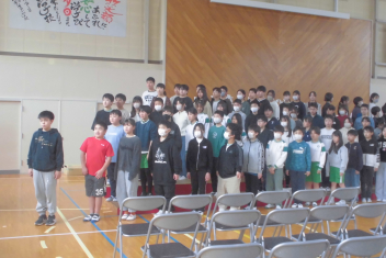 •  今日の昼休みに、5・6年生が体育館で委員会引継ぎ式を行いました。