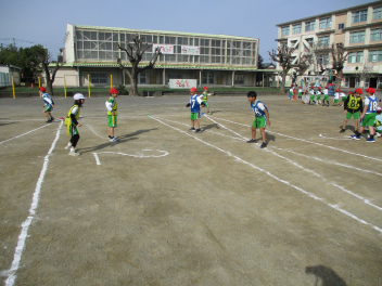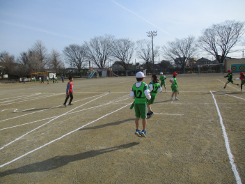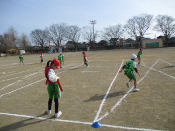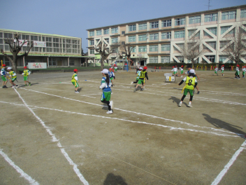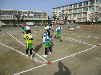 •  3年生は、体育科の学習で、タグを使った陣取りゲームに挑戦しています。