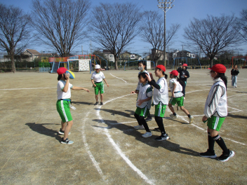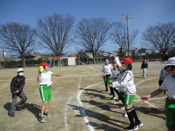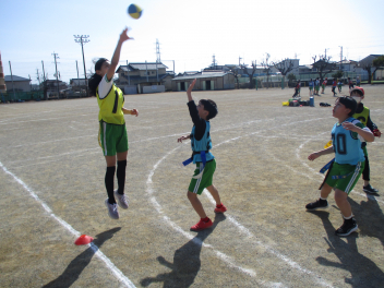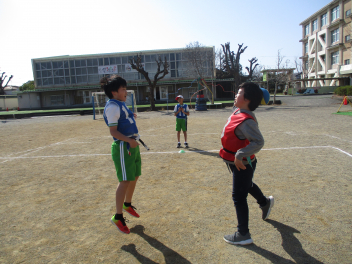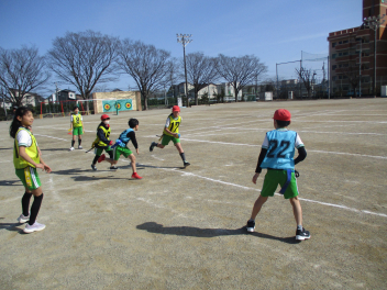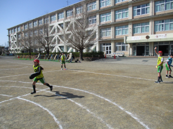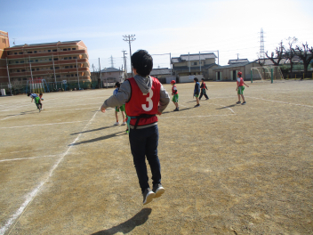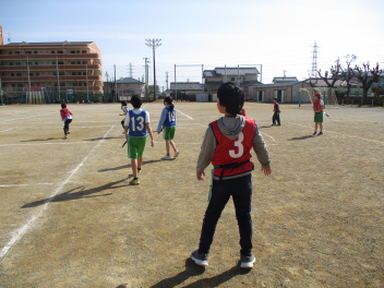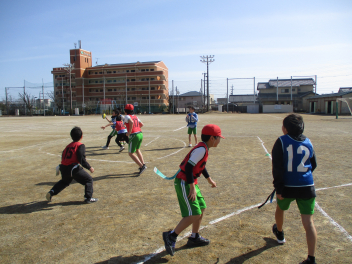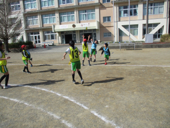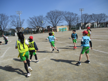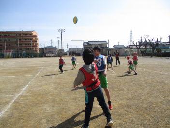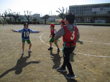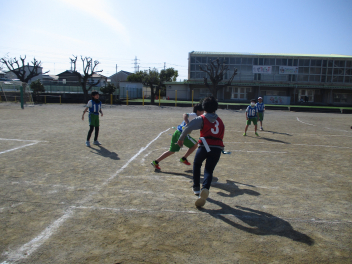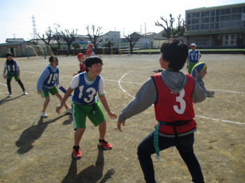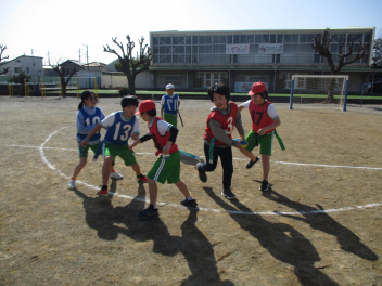 •  4年生は、体育科の学習で「タグラグビー」に挑戦しています。