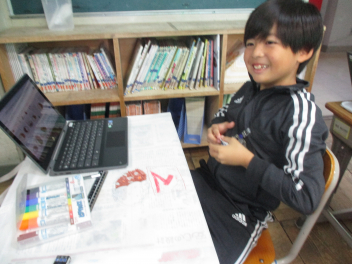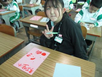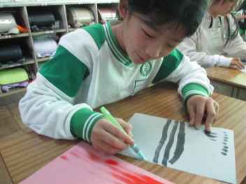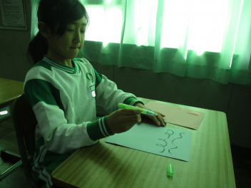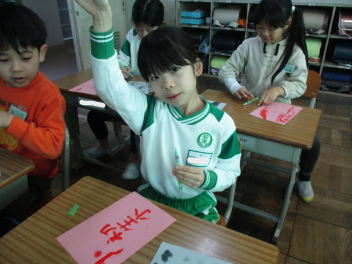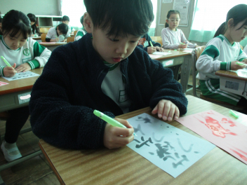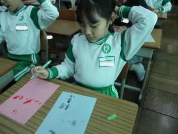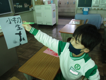その後、我が母校「初生小」や自分の名前など『文字』を書くことにも挑戦しました。