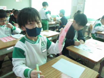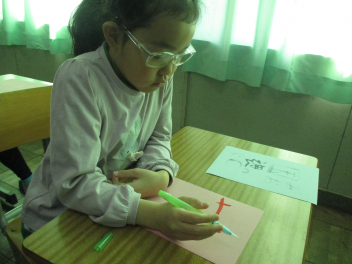 •  みどり学級では、図画工作科の学習に取り組んでいました。
