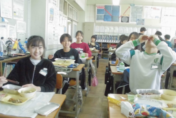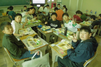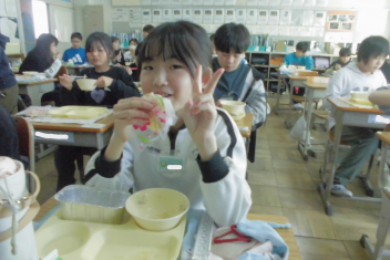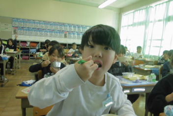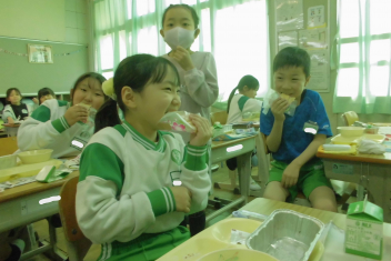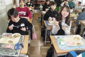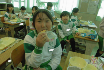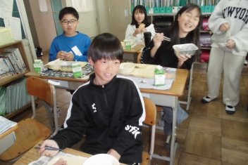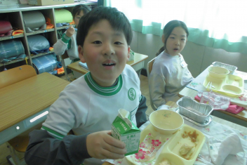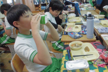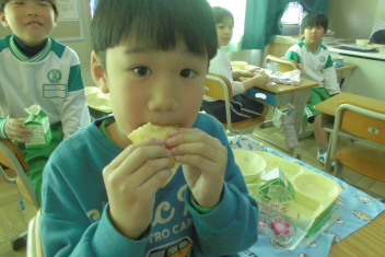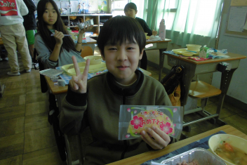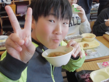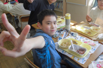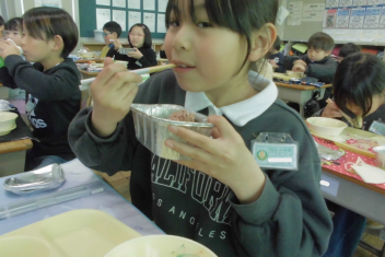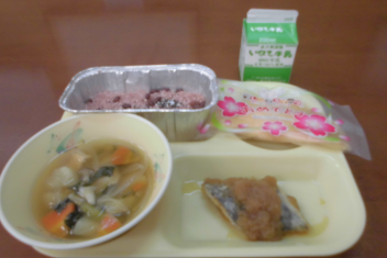 今日 は、6年生 の卒業 をお祝 いする献立 です。赤飯 は、赤色 が邪気 を払 うとされていたことから、昔 からお祝 いの時 に食 べられてきました。また、周 りを海 に囲 まれている日本 では、新鮮 な魚 が手 に入 りやすく、主食 のお米 とよく合 うため、お祝 いの時 に魚  を食 べる文化 があります。さわらは、成長 とともに名前 が変 わる「出  世魚 」で、縁起 のいい魚 と言 われています。
