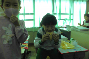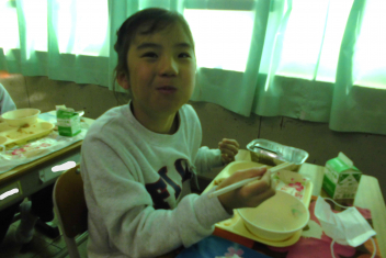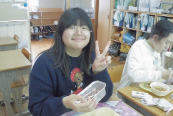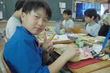 • 赤飯、牛  乳、ごま塩、さわらのみぞれかけ、実 だくさん汁、クレープ