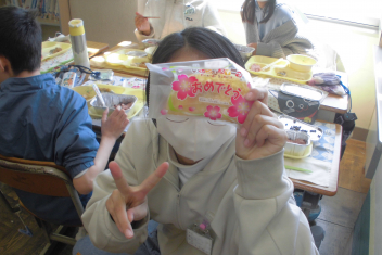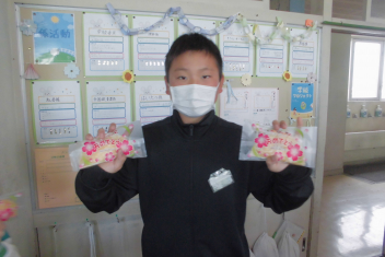 •  2年生が、年度末恒例の作品入れバック作りに取り組んでいました。
