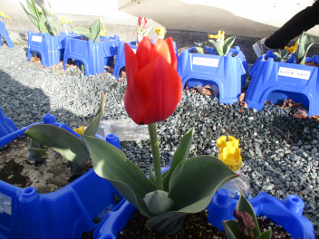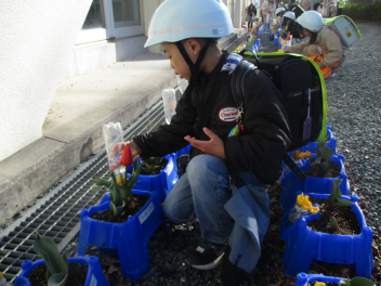 •  1年生が生活科の学習で育ててきたチューリップの花が咲き始めています。