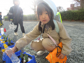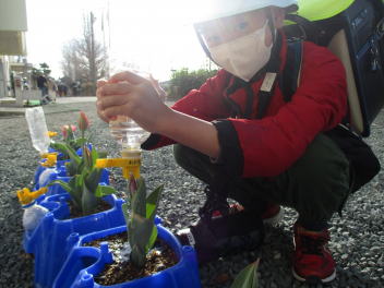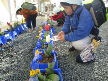 毎朝水やりを欠かさずに育ててきたチューリップ。1年生と共に成長してきました。