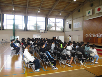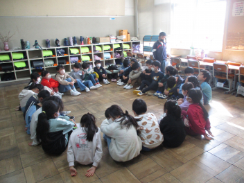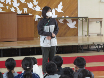 練習の最後には、担任の先生から卒業する6年生への思いが伝えられました。子供たちは真剣な表情で話を聴いていました。