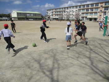 •  4年生は、体育科の学習で「サッカー」に挑戦しています。