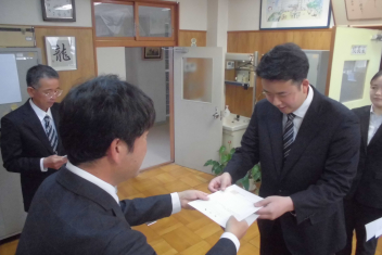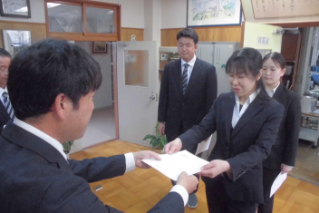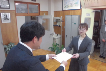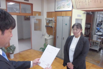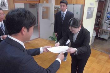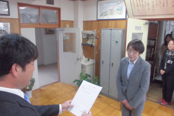 一人一人に辞令書を手渡し、正式に初生小学校の一員となりました。