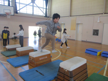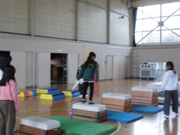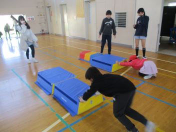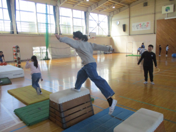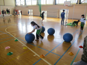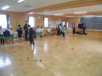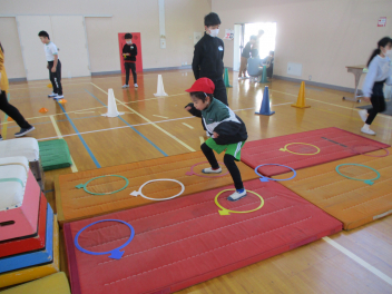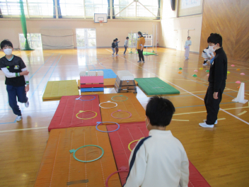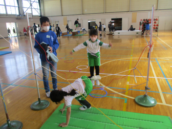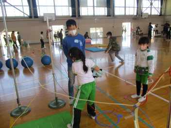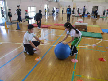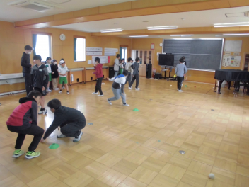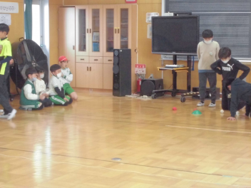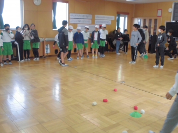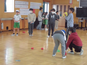 6年生を中心に班のみんなで決めた遊びに、仲良く取り組んでいました。frown