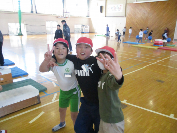 異学年の友達とも、仲良く楽しく活動することができる初生小学校の子供たちです。frown