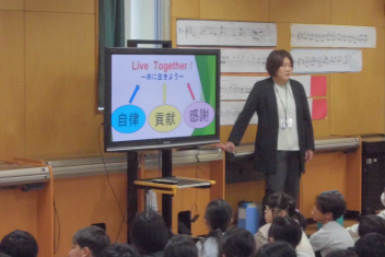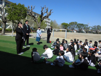 校長の話では、初生小学校の新しい学校教育目標「なりたい自分を共に目指して さあ、やってみよう!」について話をしました。本年度の教育活動を通して、子供たちはどのように成長していくのか…。その姿を想像するだけで、とてもワクワクします。