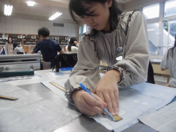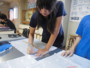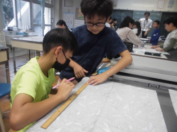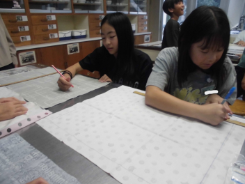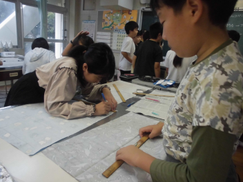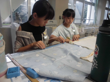 •  5年生が、ランチョンマット作りに挑戦しています。