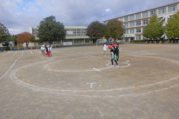 この日は、陣取りゲームを行いました。子供たちは、夢中になりながら力いっぱい、そして楽しみながらゲームに取り組んでいました。また、チームの仲間を応援したり、励ましたりする姿から、3年生のパワーと優しさを感じました。