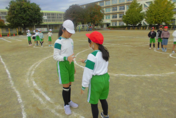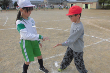 •  3年生の体育科の学習では、心と体をほぐしてから主運動に取り組むことができるように、授業の前半に「体ほぐしの運動」を取り入れています。