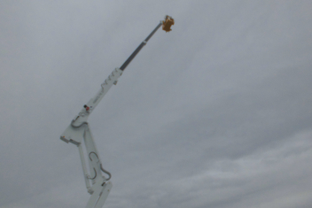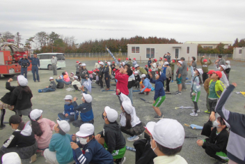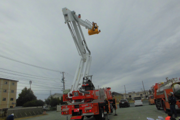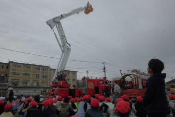 はしご車のはしごが伸びる様子を見て、子供たちは大興奮!! 子供たちの驚きの声が響き渡りました。