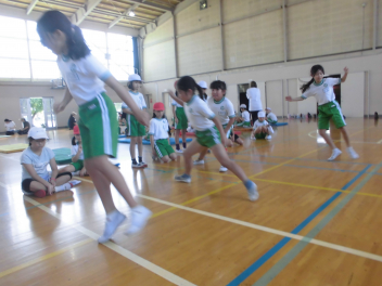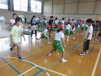 運動場種目(50m走・ソフトボール投げ)と体育館種目(立ち幅跳び・反復横跳び・上体起こし)の計5種目を測定しました。子供たちは、自己新記録の更新を目指し、最後まで力いっぱ取り組んでいました。