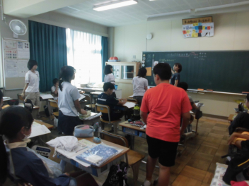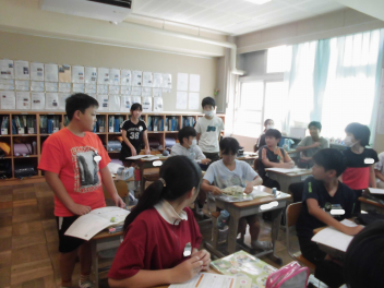 はじめは、グループ内でゲームを楽しんでいましたが、ある子の発案で対戦型ゲームに発展したグループもありました。また、リードしているチームがはっきり分かるとゲームが盛り上がりそうだと感じた子が進んで得点係を務めていました。