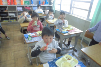 •  1年生の教室から、かわいらしい演奏が聴こえてきました。