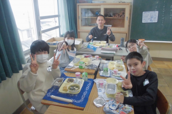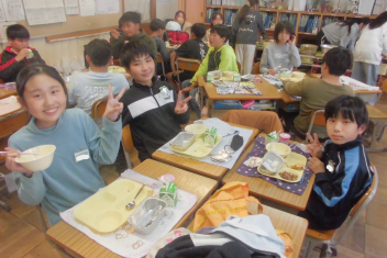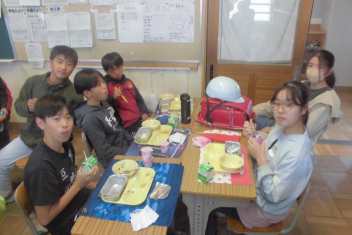 鶏肉には体をつくるもとになるたんぱく質や、皮ふや粘膜を丈夫にする働きのあるビタミンAが多く含まれています。鶏肉の栄養だけではビタミンCや食物せんいが不足してしまいますが、野菜と一緒に食べることで不足しがちな栄養素を補うことができます。今日は、ごま酢あえやみそ汁に野菜を使いました。いろいろな食品をバランスよく食べたいですね。