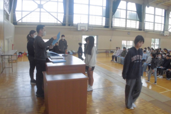 2月26日(木)に、3年生が学年集会を開きました。