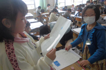 •  2年生は、国語科の学習でまとめた「生活科の学習で作ったおもちゃ」の説明文を友達に伝えていました。