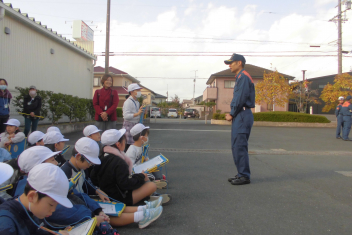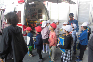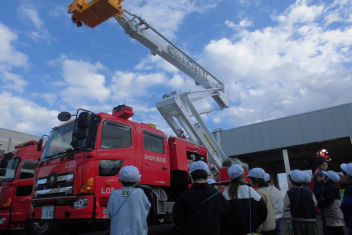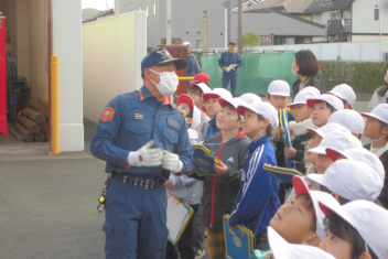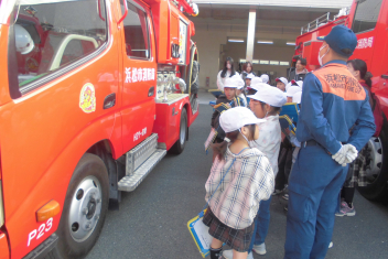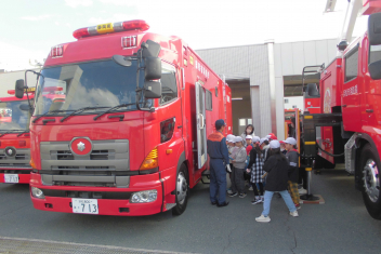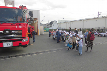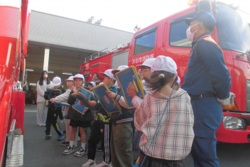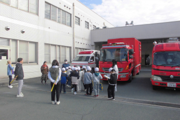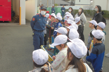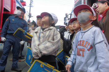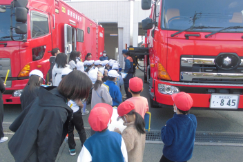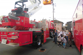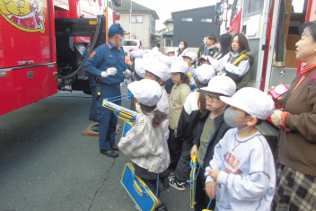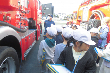 消防士の方から消防の仕事の内容や消防署にあるいろいろな車(はしご車やポンプ車等)について詳しく教えていただきました。いろいろな驚きや発見があった町探検。次は、どんな驚きや発見を見付けることができるかな?