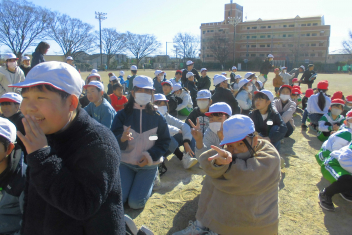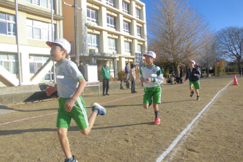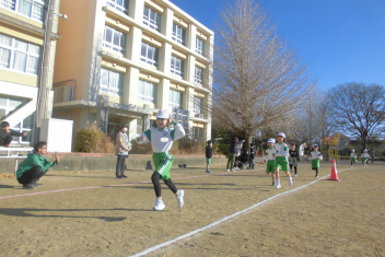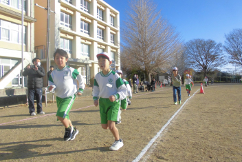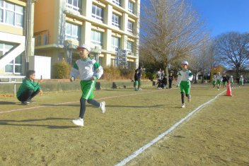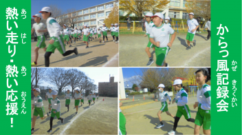学年全員が運動場に集まり、大きな声で走っている友達を応援する姿がたくさん見られました。 その声援に勇気をもらい、小学校生活最後のからっ風記録会を楽しみながらも力強く走り抜くことができました。