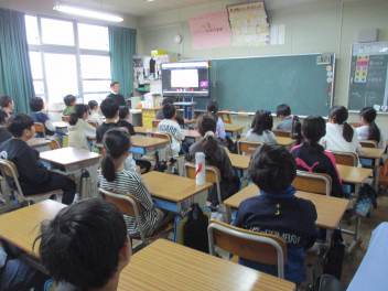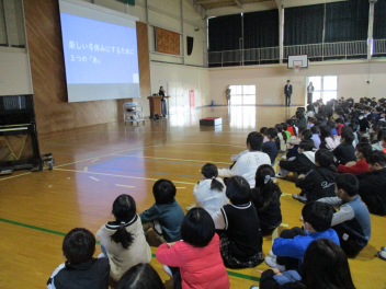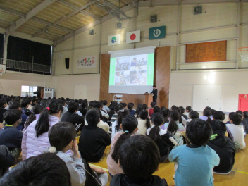 校長の話では、パワーポイントのスライドショーを通して、全校の子供たちと2学期の振り返りをしました。(スライドショーの内容については、この後のブログを通して紹介します。お子様と共に2学期の振り返りをしていただけると幸いです。)