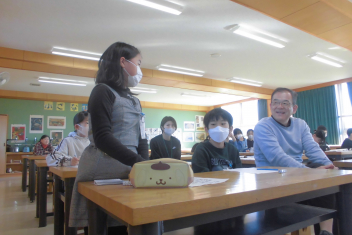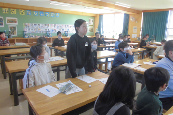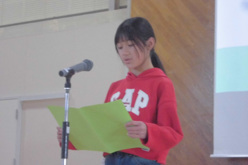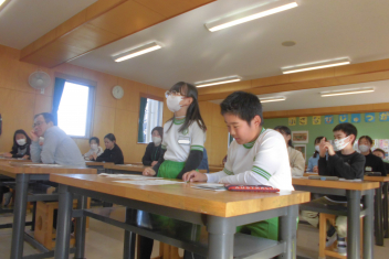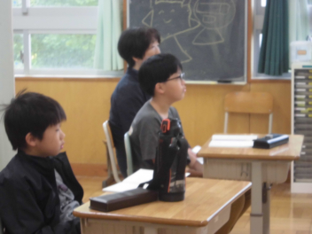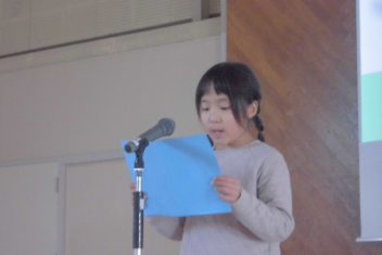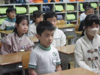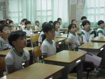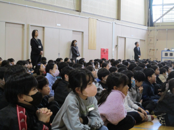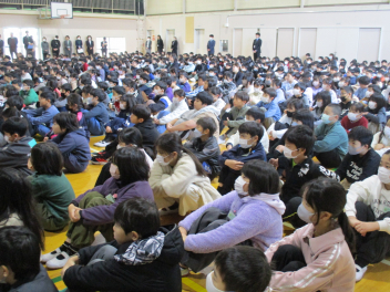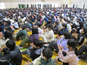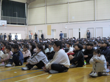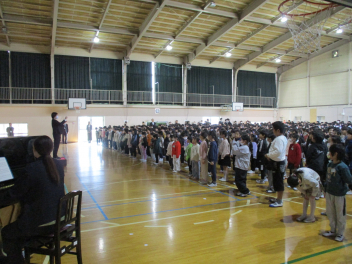 続いて、全校で校歌を歌いました。子供たちの元気いっぱいな歌声が体育館中に響き渡り、いつ聴いても心が明るくなります。素敵な歌声でした。