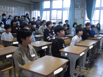 最後に、生徒指導担当の先生から「楽しい冬休みにするために、大切にしたい3つの『あ』」についてお話がありました。3つの『あ』を守り、令和8年1月6日(火)に元気な姿で再開しましょうね。
