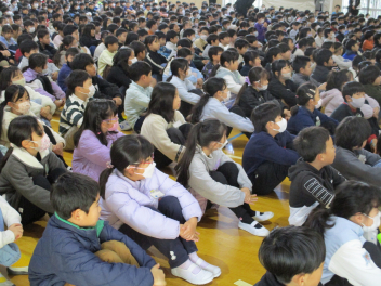 今日は、2学期終業式を行いました。はじめに、1・3・5年生の代表児童が、2学期に頑張ったことや2026年の抱負を立派に話してくれました。