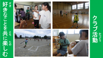 魅力ある楽しい学校は、子供たちが中心となって創り上げていくもの。話し合いを通して出された意見をベースに、みんなにとってよりよい学校となるよう、心を一つに合わせ、様々なことに楽しみながら挑戦することを期待しています