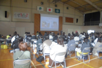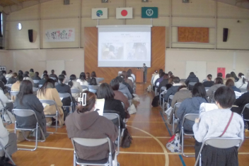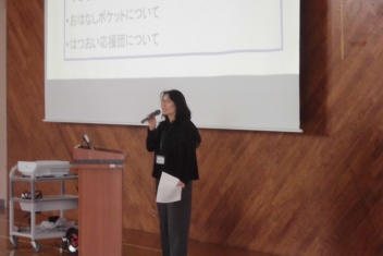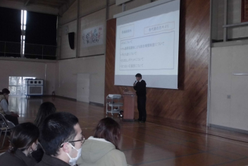 説明会では、それぞれの担当者から、本校の教育目標や学校生活の様子、PTA活動や子ども会、おはなしポケット(読み聞かせ)、はつおい応援団等について説明をしました。