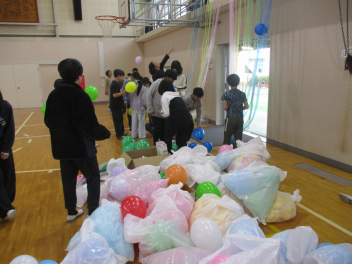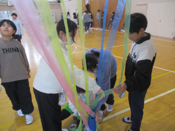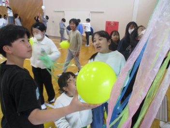 6年生を中心に班のみんなで決めた遊びに、仲良く取り組んでいました。frown