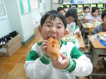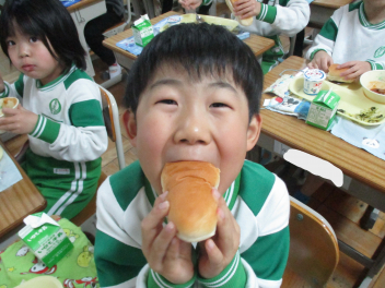 • パン、牛乳、ポークビーンズ、キャベツソテー、ヨーグルト