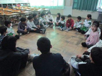 異学年の友達とも、仲良く楽しく活動することができる初生小学校の子供たちです。frown