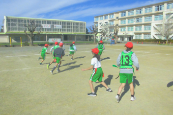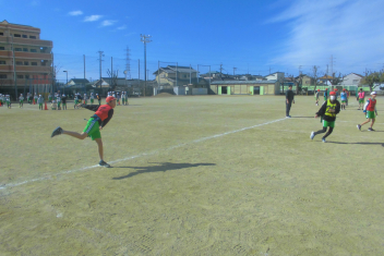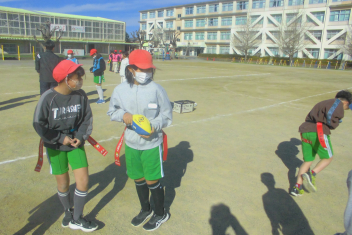 •  5年生は、体育科の学習で「タグラグビー」に挑戦しています。