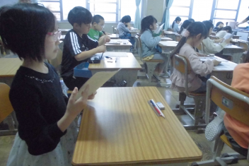 最後に、6年生からお礼の言葉と初生小学校の校歌のプレゼントがありました。