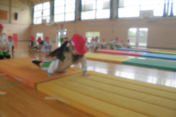 •  2年生は、体育科の学習で「マット遊び」に挑戦しています。