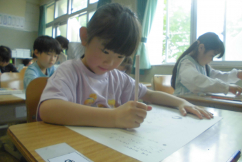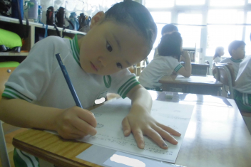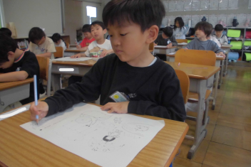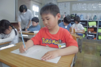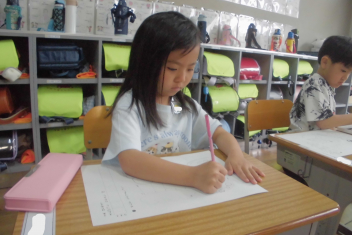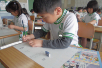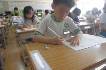•  背筋をピンと伸ばして、姿勢よく漢字ドリルを使って新出漢字に取り組んでいました。