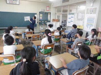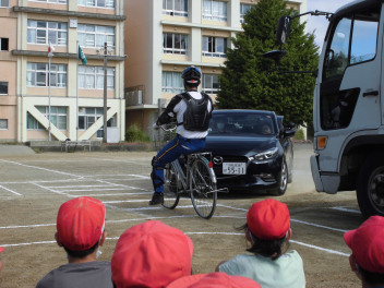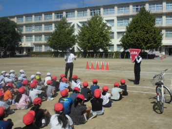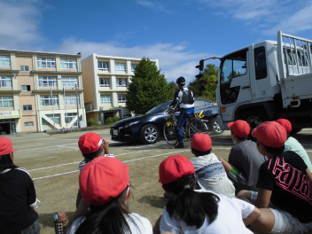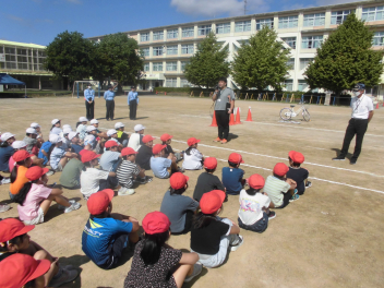 •  10月7日(火)、1・3・5年生を対象に、交通安全協会の方を講師としてお招きして交通教室を行いました。