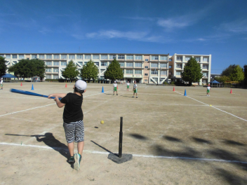 •  3年生は、体育科の学習でベースボール型ゲームに挑戦しています。