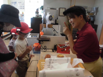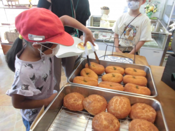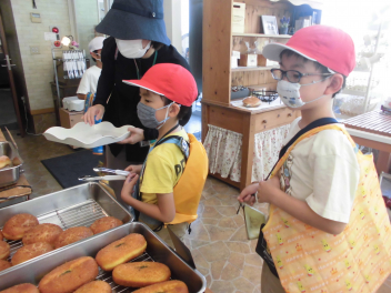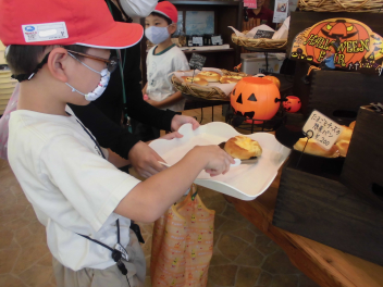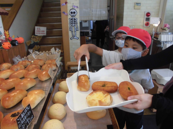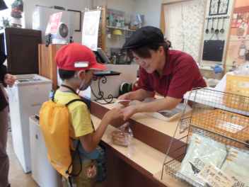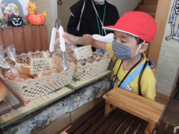 •  10月9日(木)、みどり学級の子供たちが、生活科と自立活動の学習の時間に、初生小学校の近くにあるパン屋さんに行ってきました。事前に考えた計画どおり、上手に買い物をすることができました。