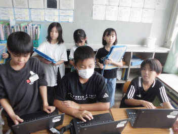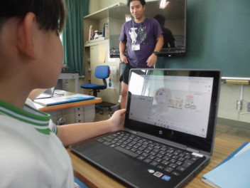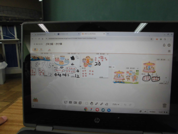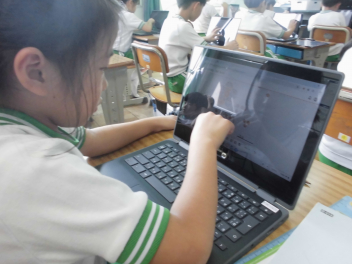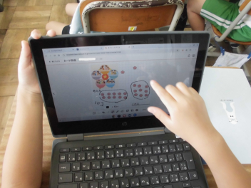 タブレット型端末を使って、自分の考えをまとめたり、友達の考えを共有したりしていました。