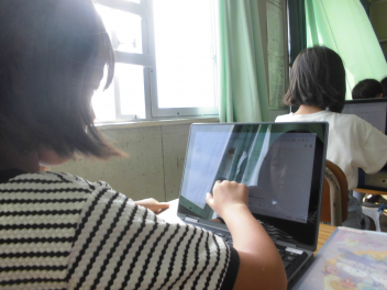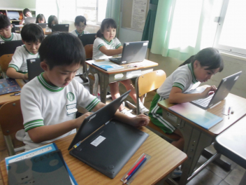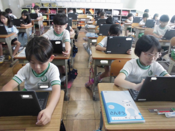 教室の中はとっても静か・・・。子供たちは集中して学習に取り組んでいました。(立派frown