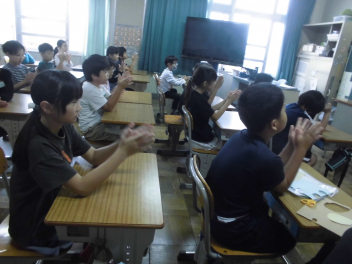 はじめは、グループ内でゲームを楽しんでいましたが、ある子の発案で対戦型ゲームに発展したグループもありました。また、リードしているチームがはっきり分かるとゲームが盛り上がりそうだと感じた子が進んで得点係を務めていました。