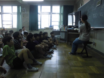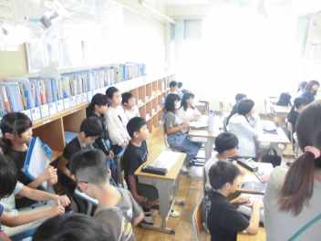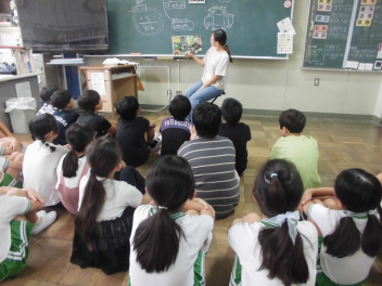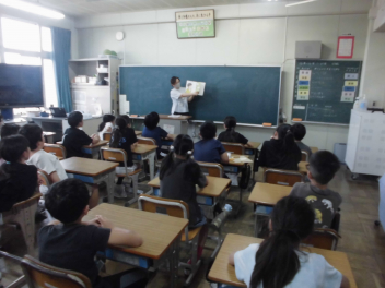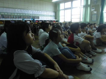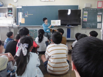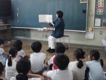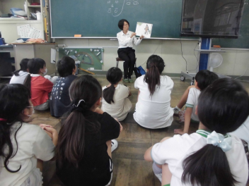 読み聞かせボランティアの方の読み聞かせに、集中して聴く3・4年生。子供たちは、想像力を働かせながら本の世界を味わっていました。